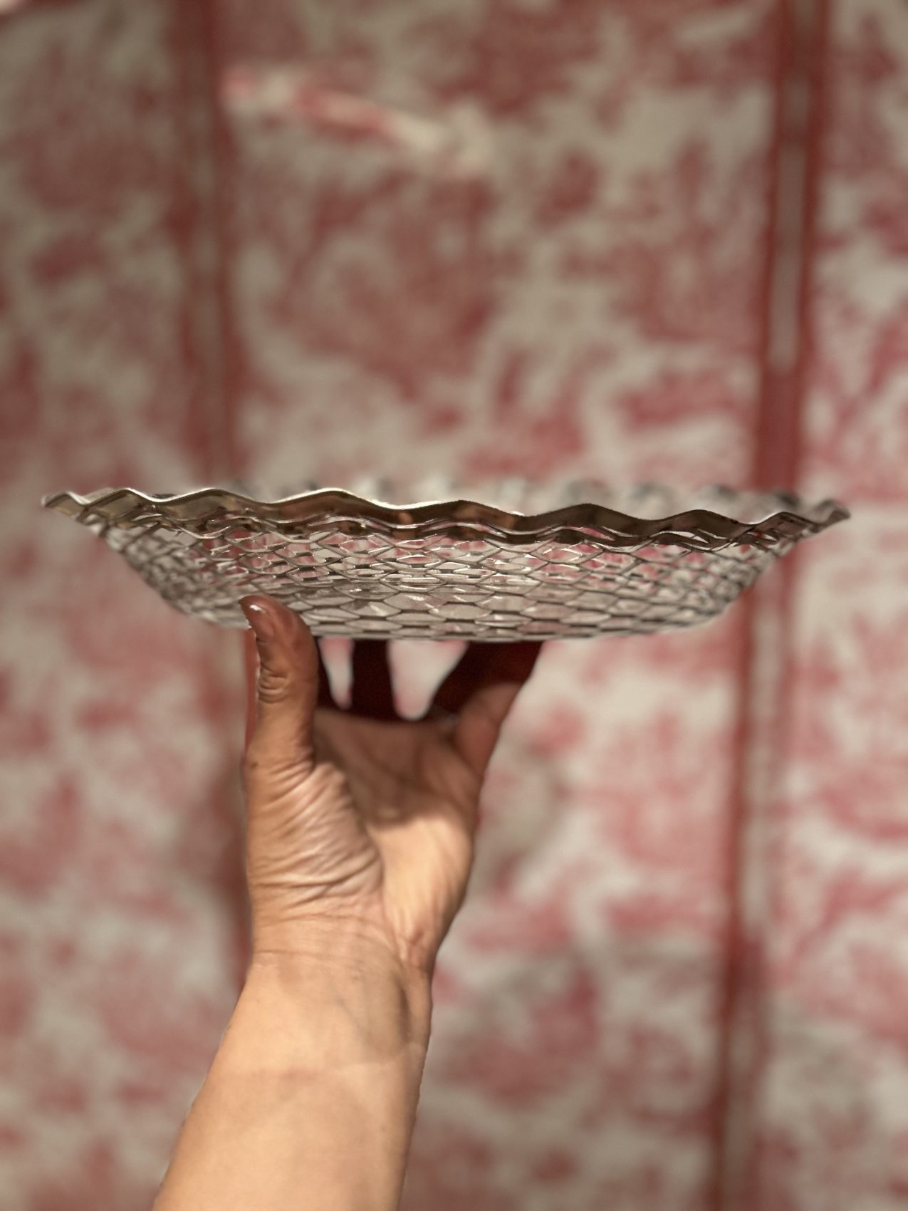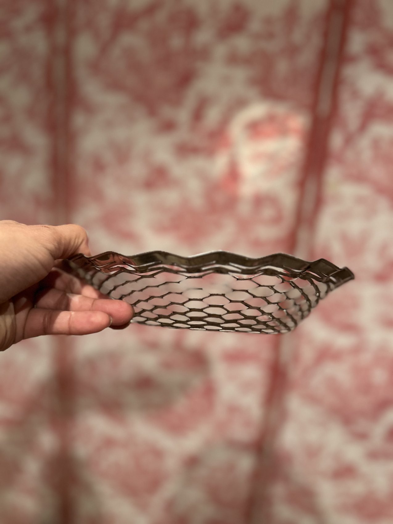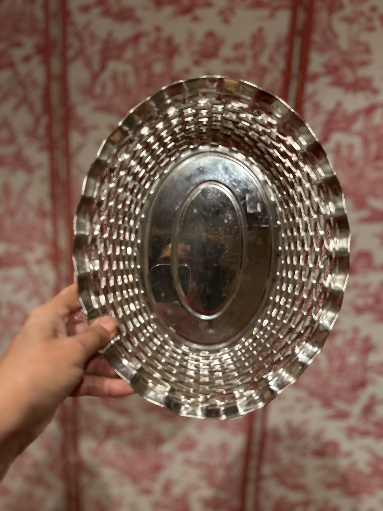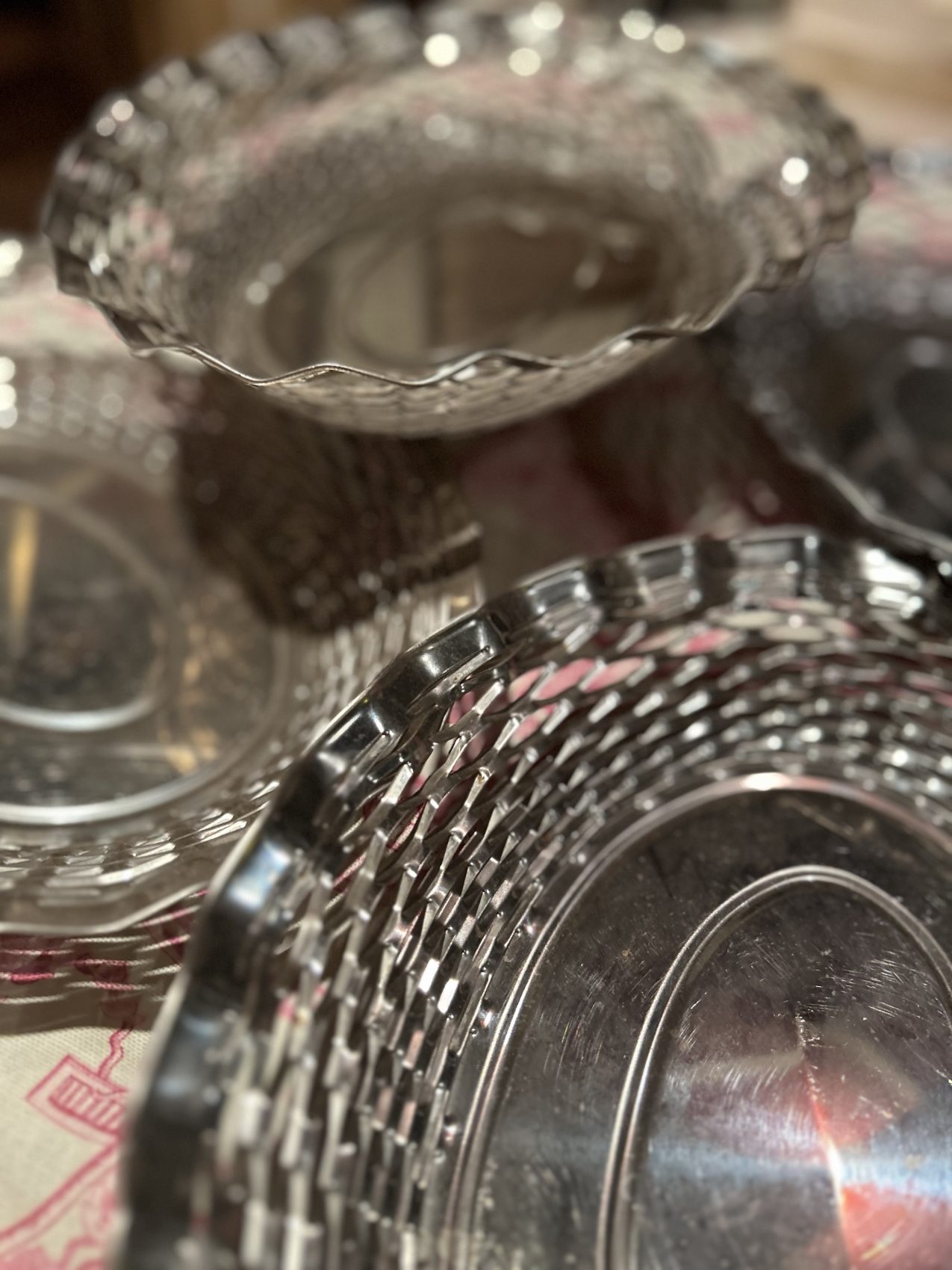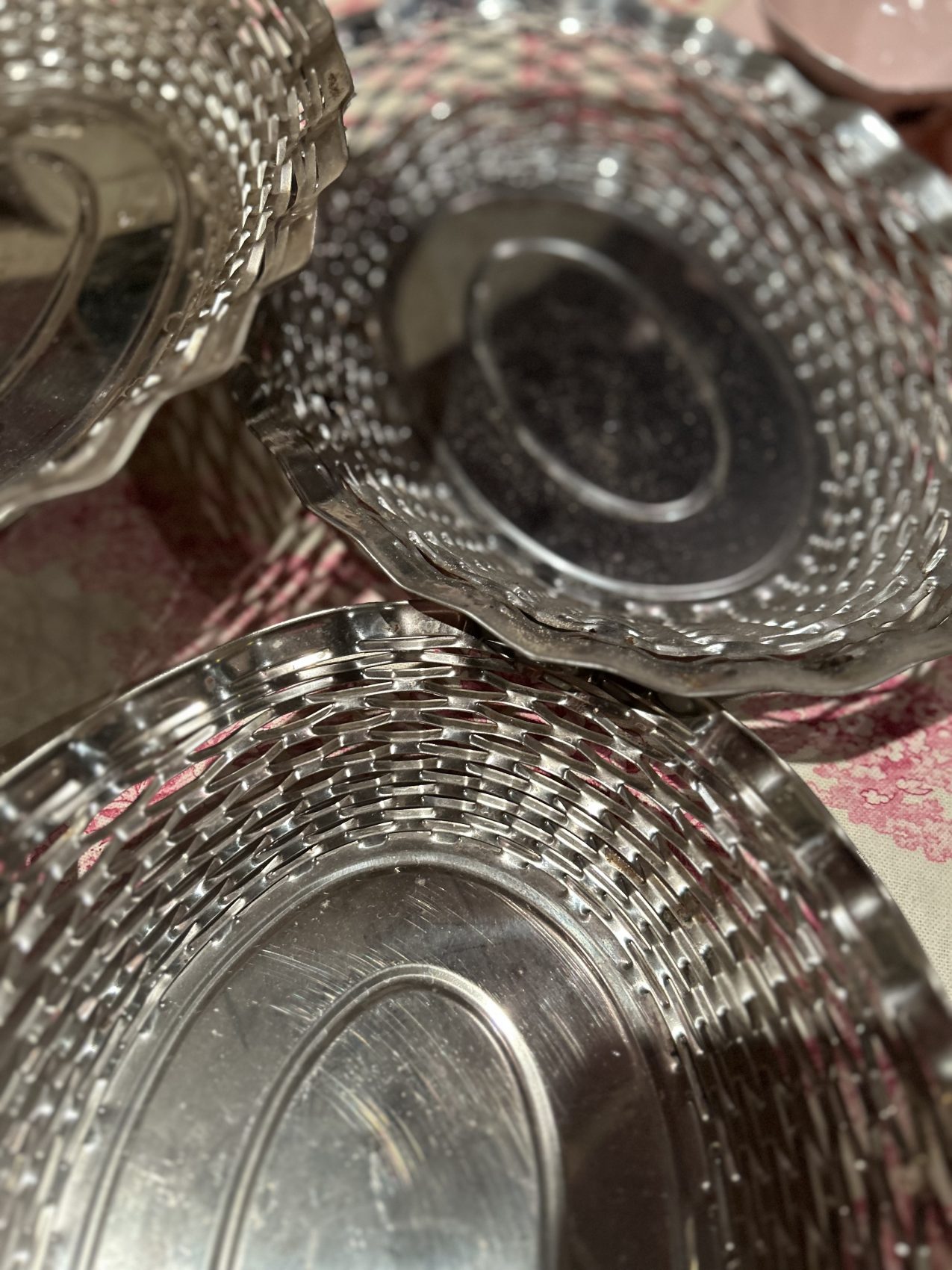 Corbeille à pain vintage en métal argenté tressé – années 60