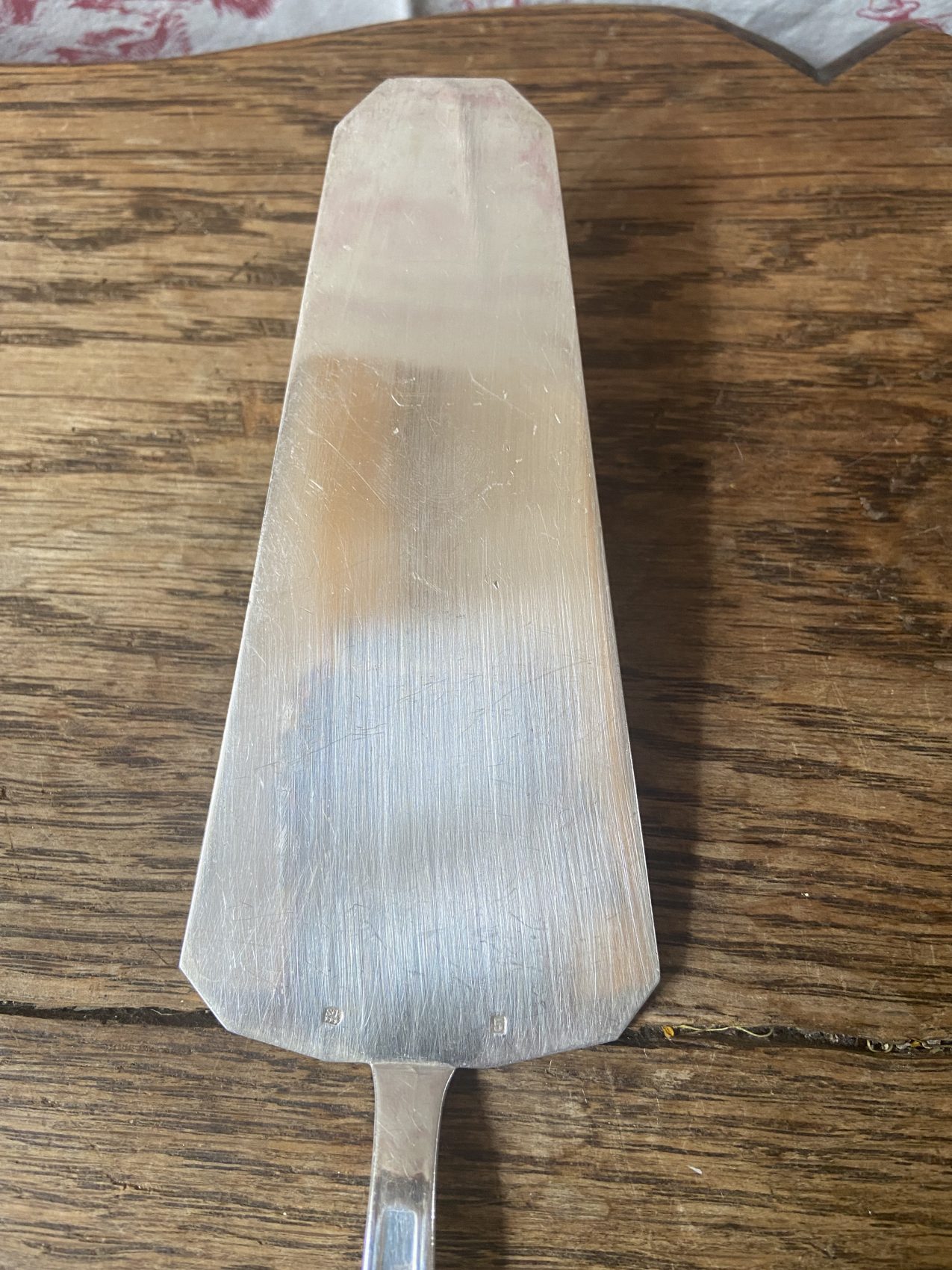 Voici une pelle à dessert qui allie utilité et esthétique, avec ce petit supplément d’âme propre aux objets anciens :