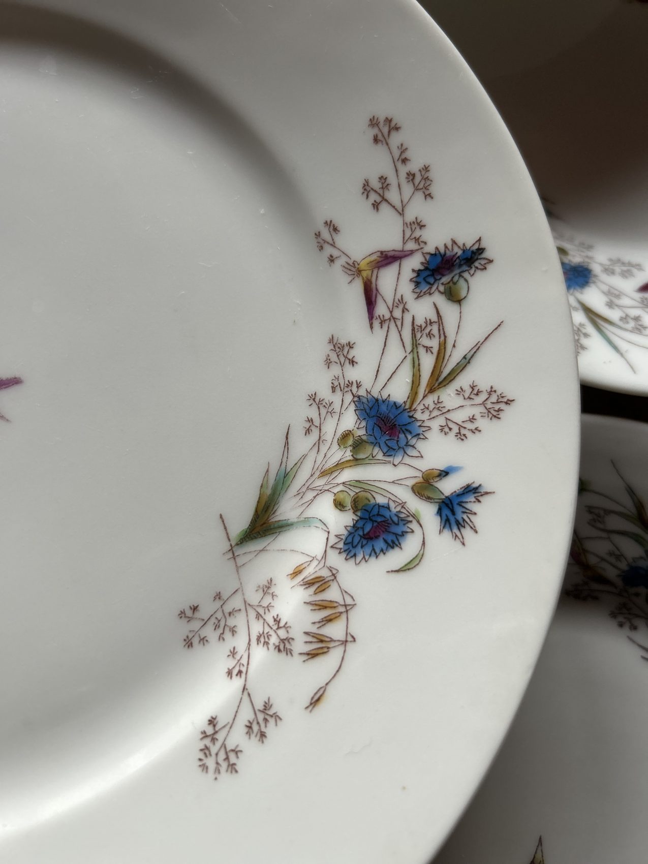 Série de 10 assiettes anciennes en porcelaine à motifs bucolique