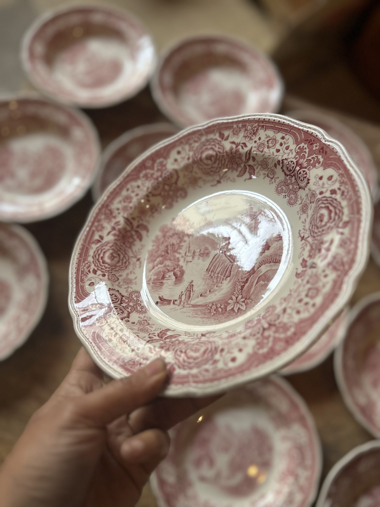 À 125 euros la série complète, vous etes certaine de faire une jolie table, le mix est facile et joli avec du blanc, ou d’autres versions anglaises dépareillées.