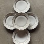 Ces assiettes sont les dernières d’un service ancien typiquement berrichon, produit dans les ateliers de Vierzon à partir de pâte de Limoges, dans les années 60.