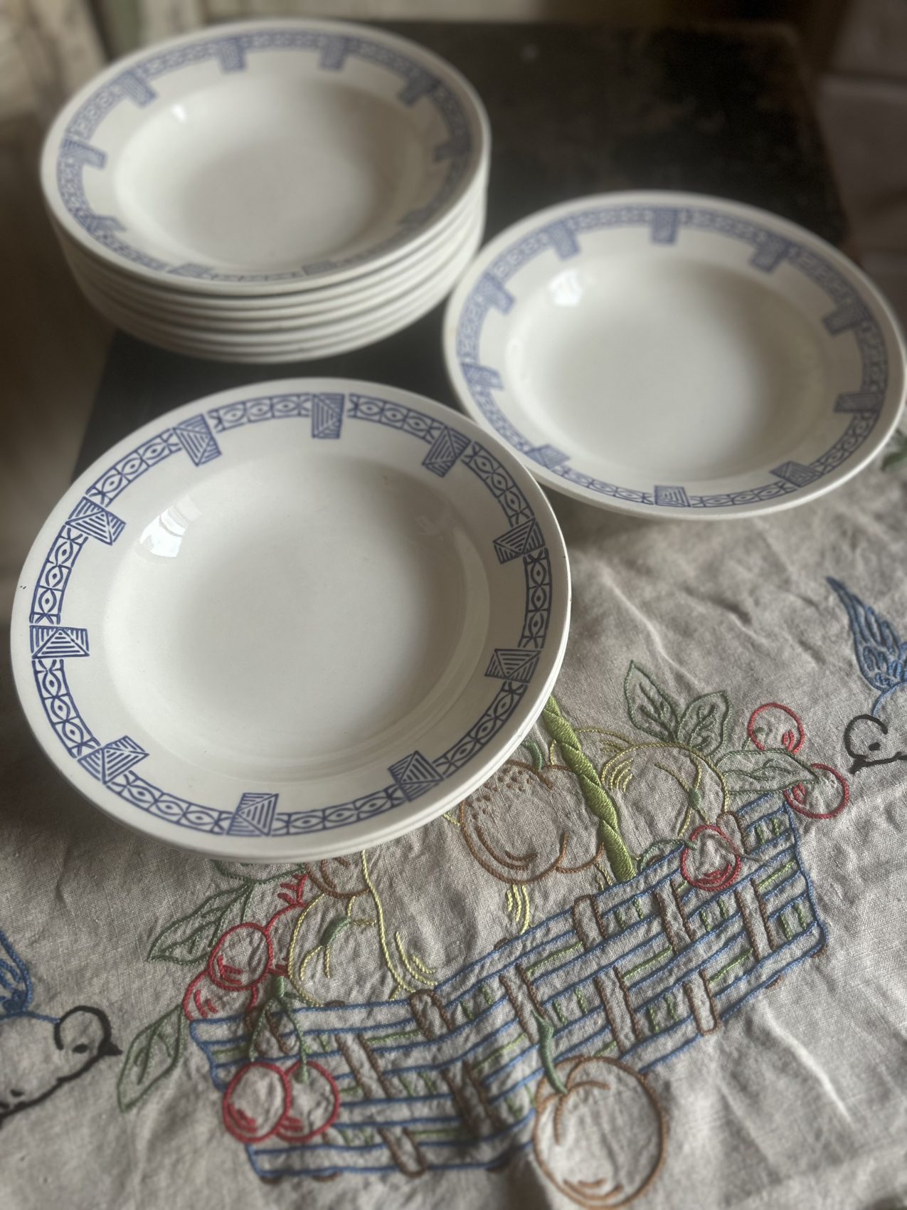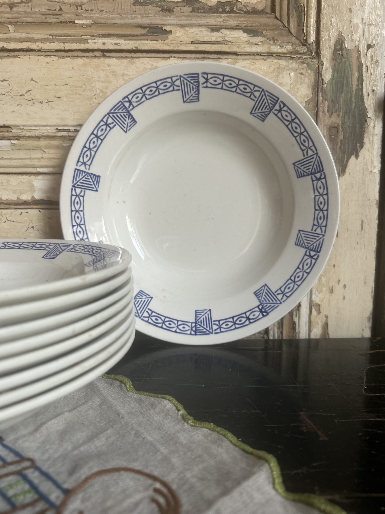 Avec leur diamètre de 22,5 cm, elles sont parfaites pour les plats en sauce, les pâtes, les soupes généreuses, mais aussi pour de grandes salades composées. C’est une vaisselle ancienne pensée pour la convivialité, pour les grandes tablées, pour les repas qui s’étirent.