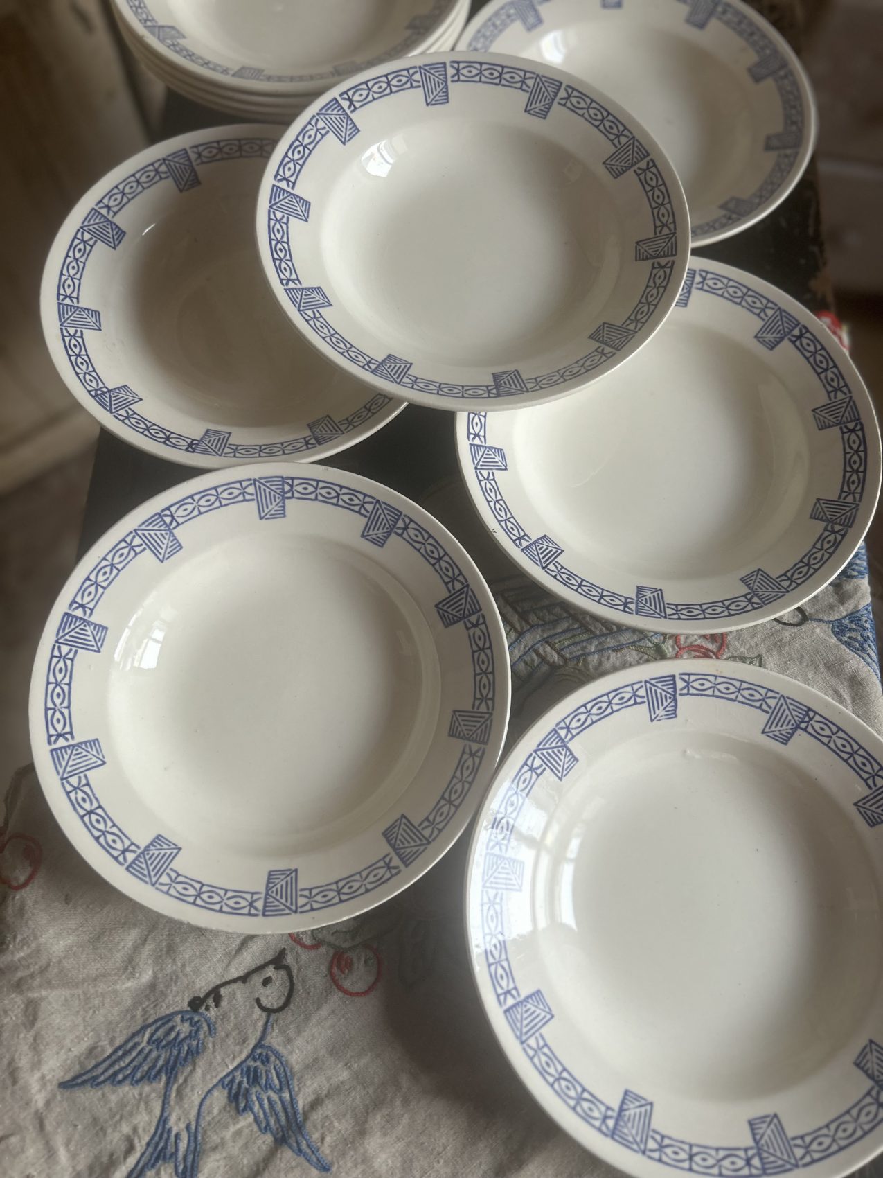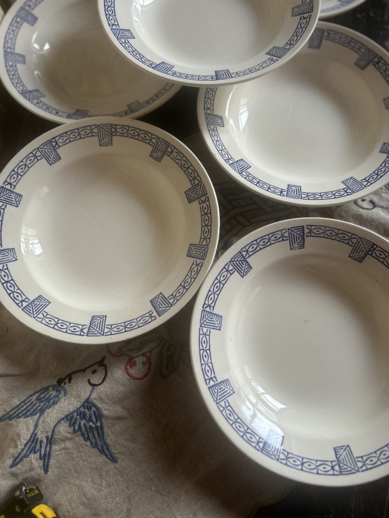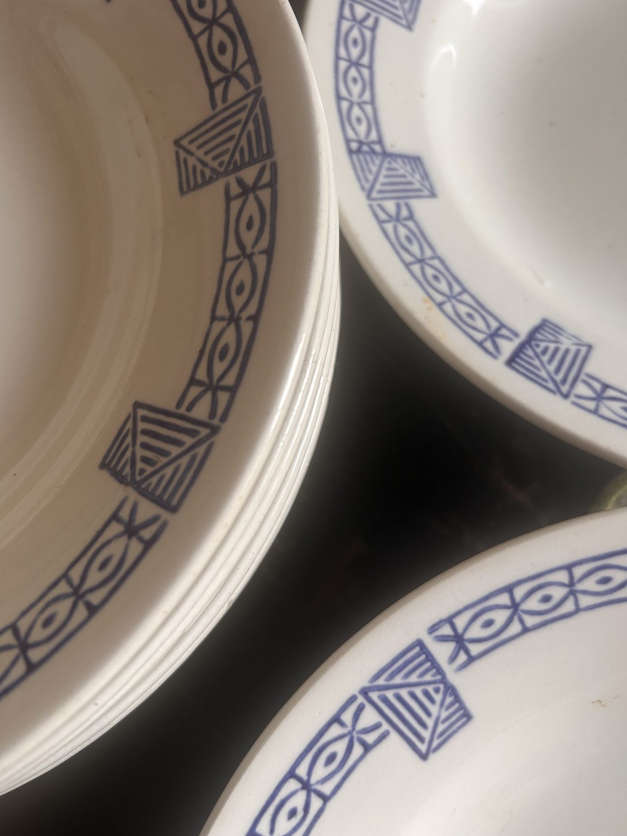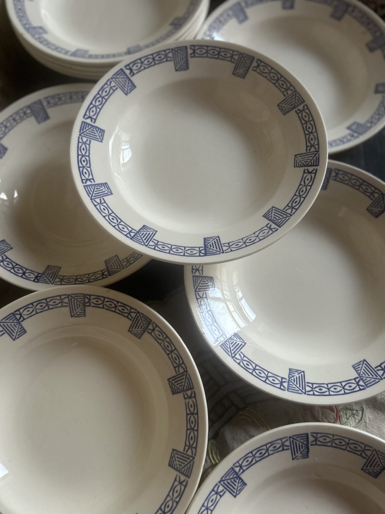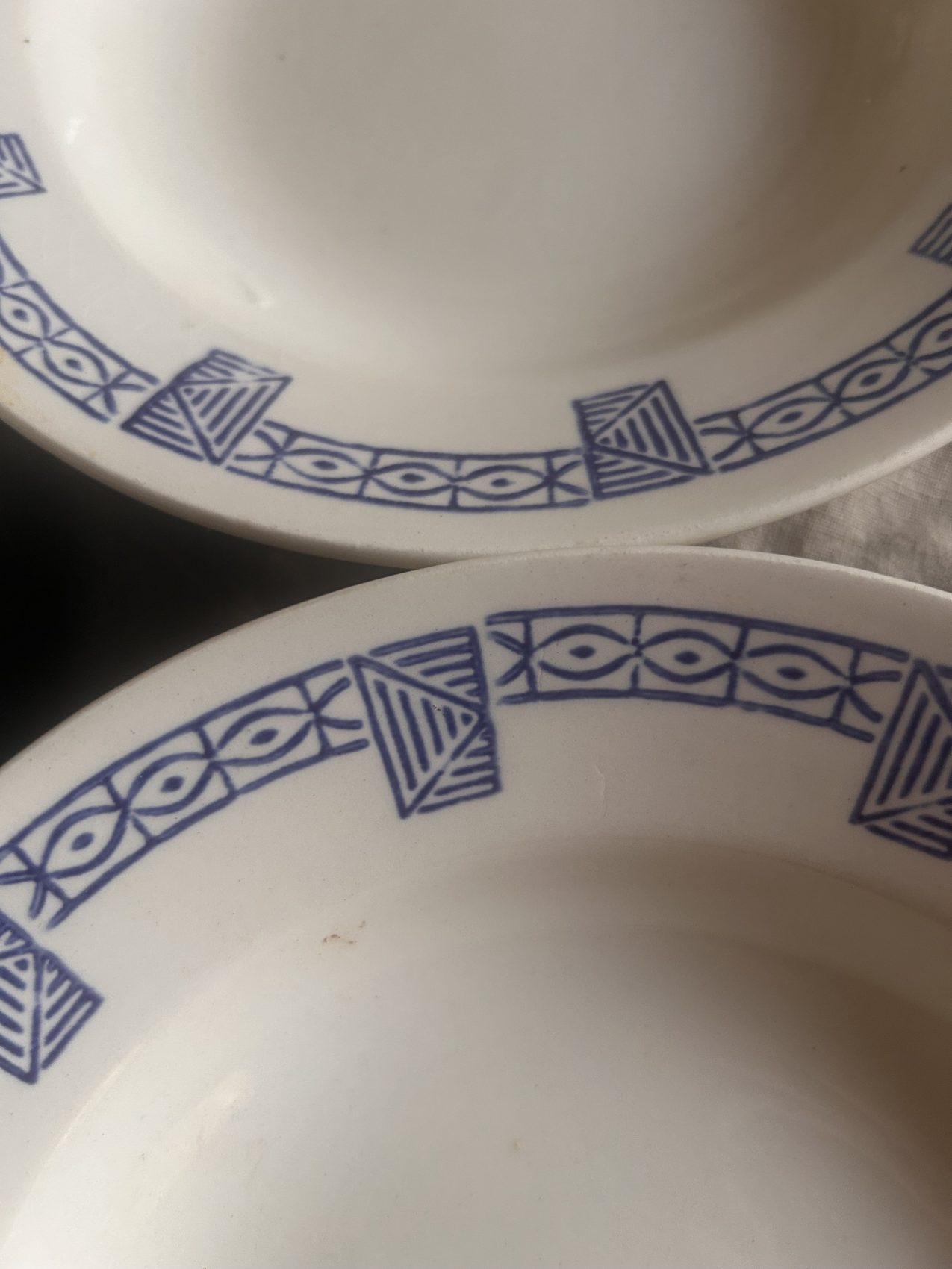 On est ici sur une qualité restaurant, une faïence conçue pour durer, pour être utilisée, lavée, servie encore et encore. Et la bonne nouvelle, c’est qu’elles sont dans un état remarquable :