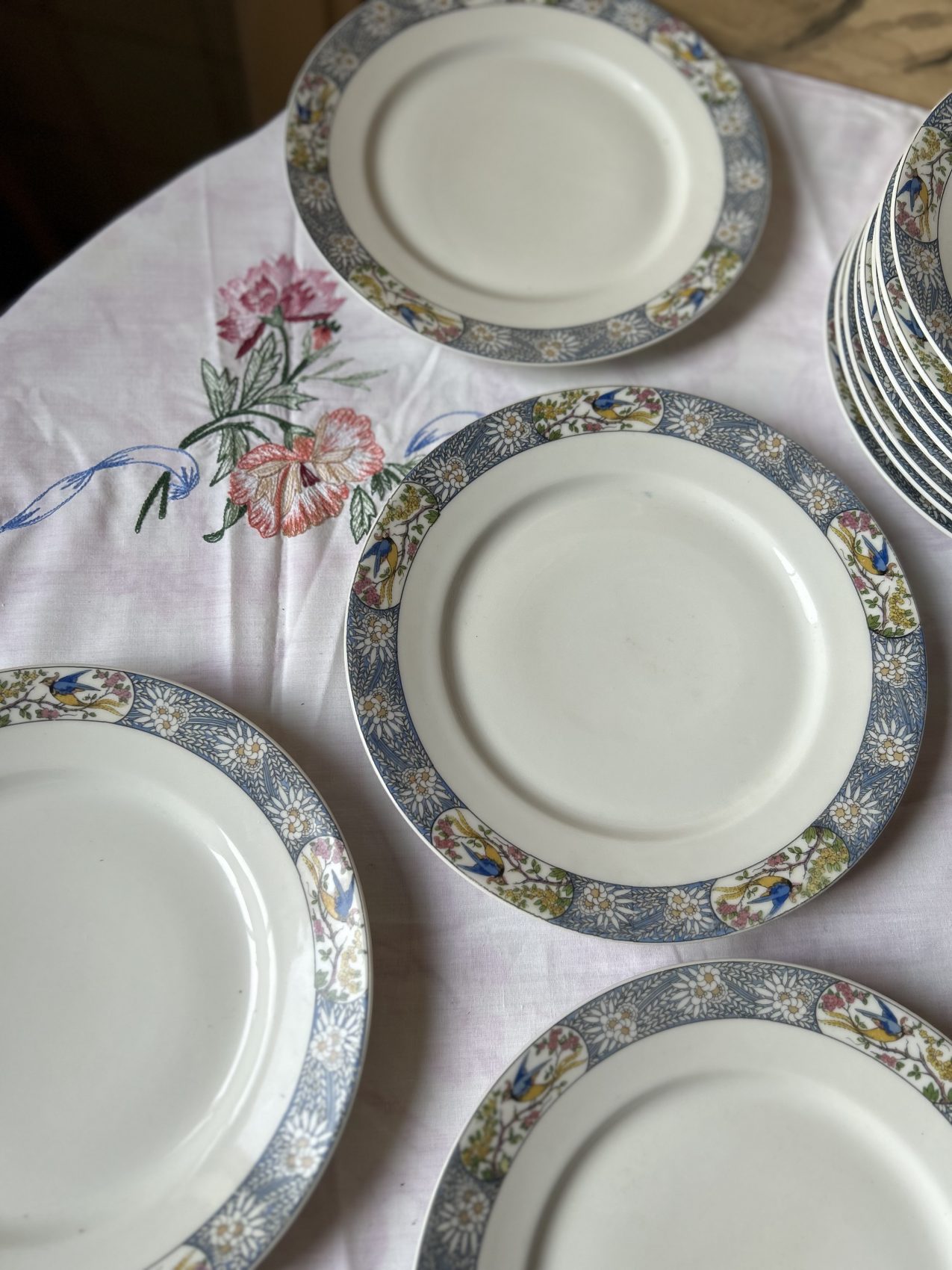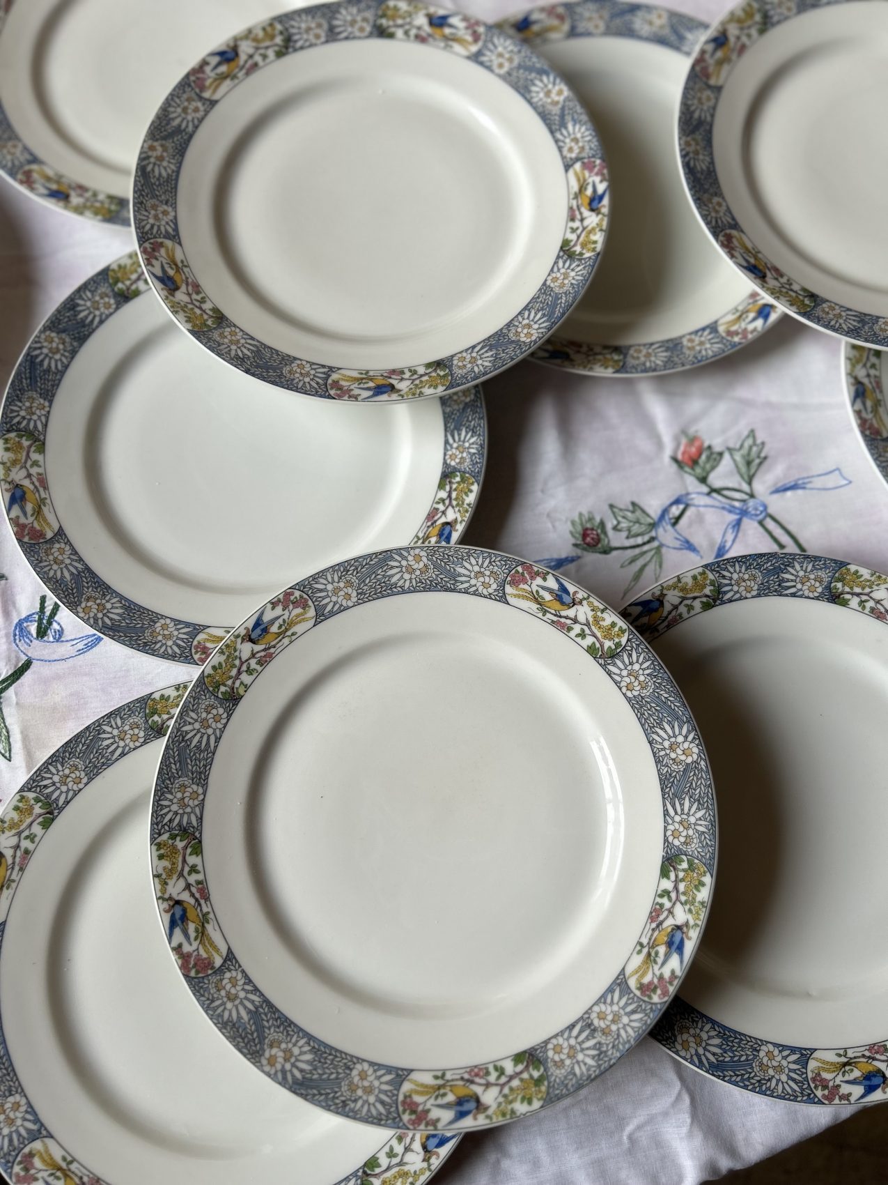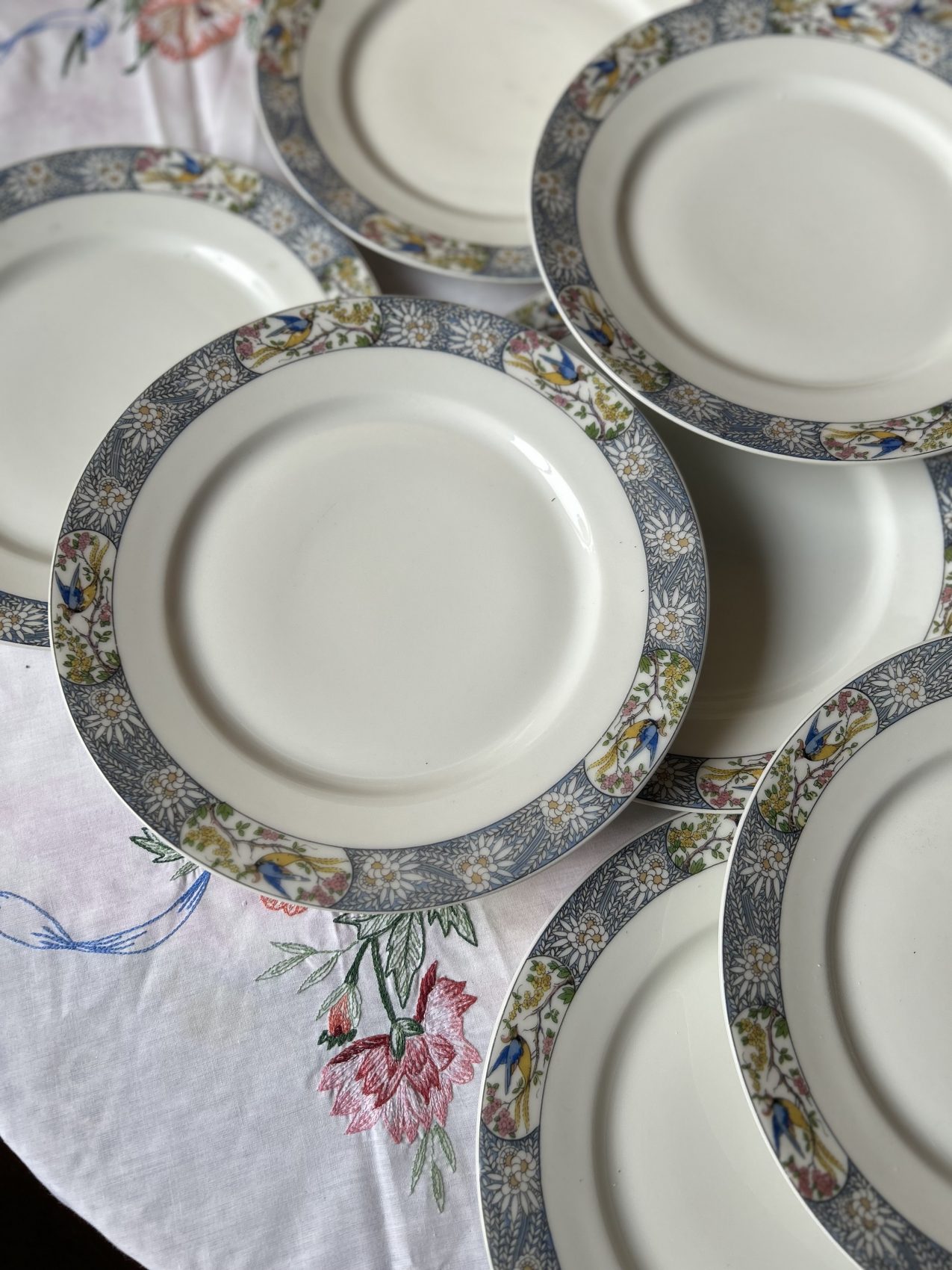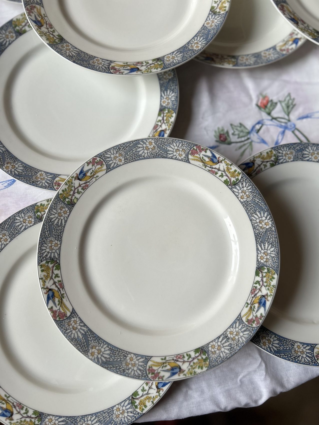 Il a ce charme un peu hors du temps que l’on ne retrouve plus aujourd’hui. Les oiseaux apportent une vraie personnalité, sans jamais voler la vedette au reste de la table. C’est exactement le genre de vaisselle que l’on aime sortir pour les belles occasions, mais qui fonctionne aussi très bien au quotidien, surtout mélangée avec une série blanche.
