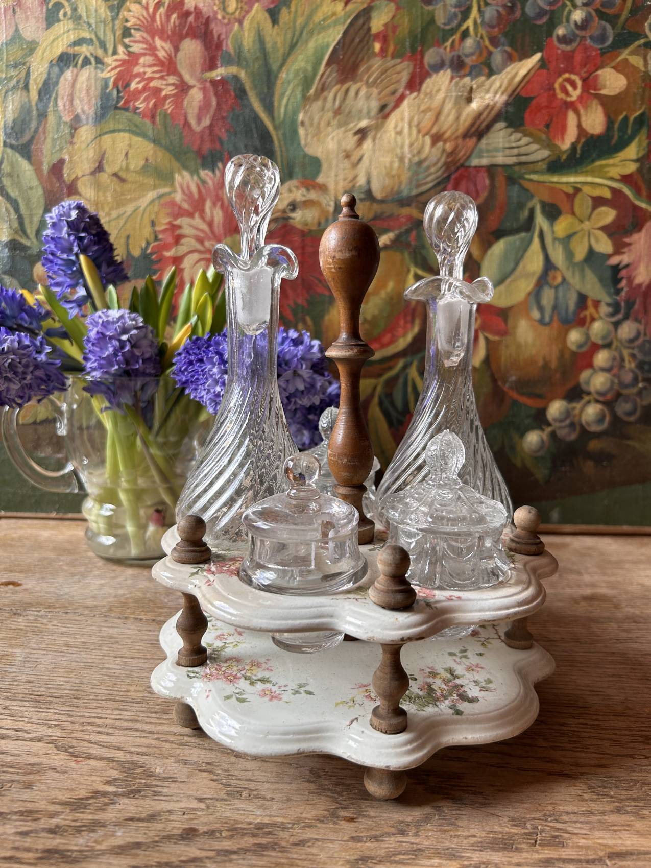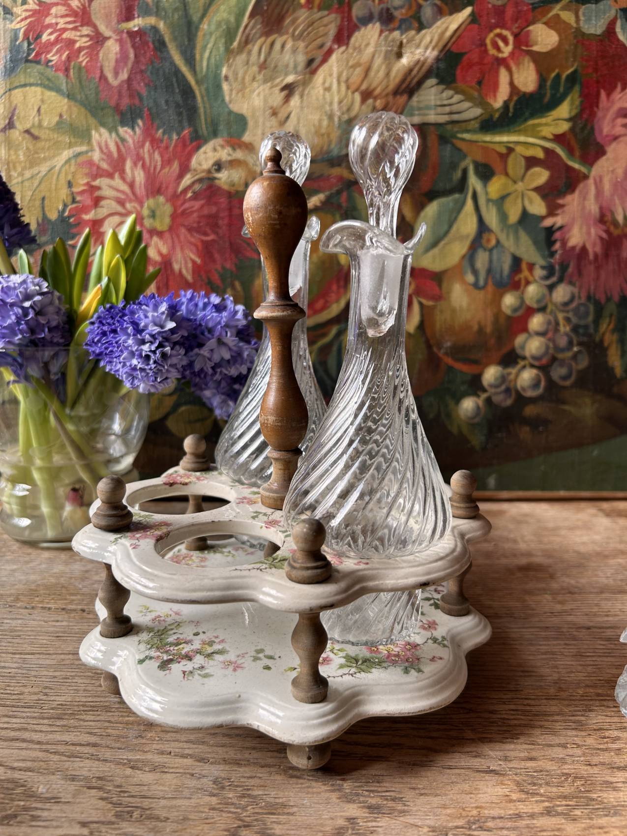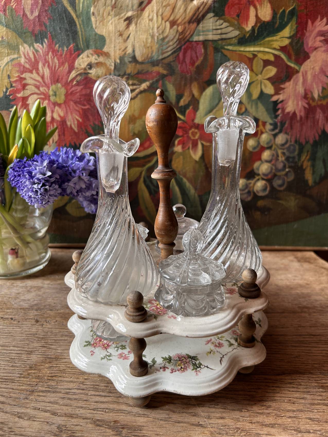 Ce genre d’objet a un talent particulier : il transforme immédiatement une table. On le pose au centre, on remplit les flacons, et tout à coup la table a une allure de maison de famille.