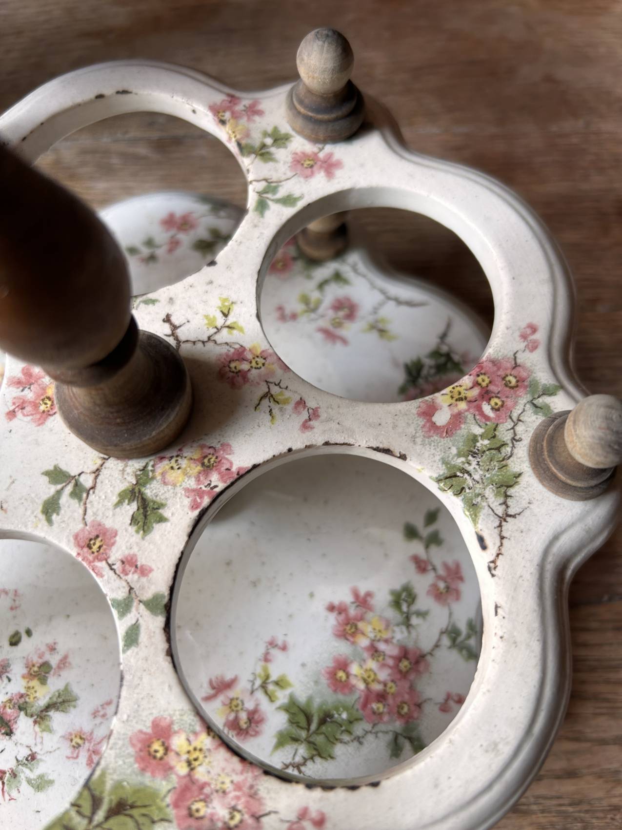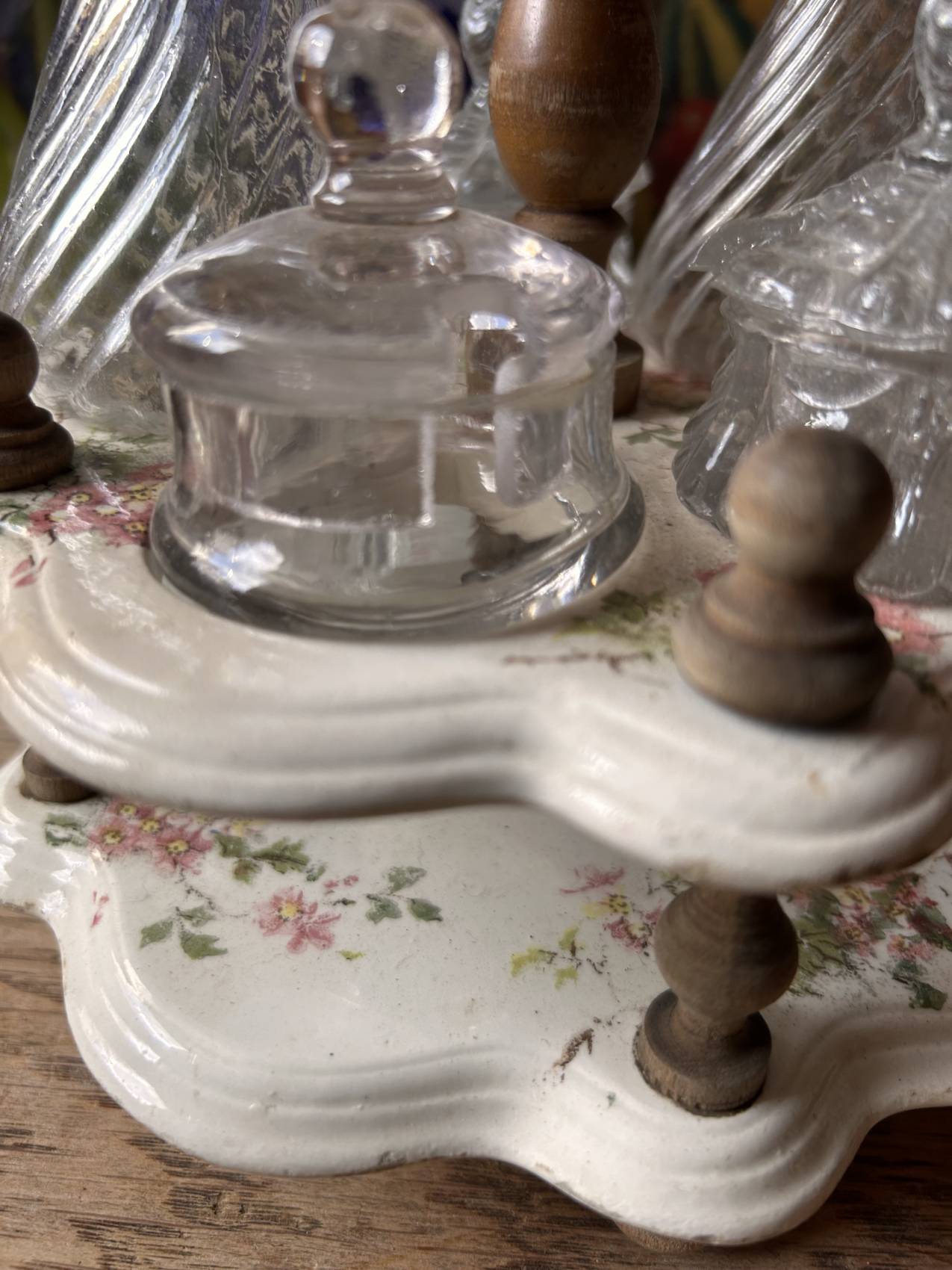 Serviteur à condiments ancien époque 1900 en faïence à motif de fleurs – Les salins