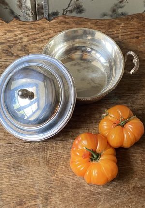Légumier couvert en métal argenté avec plat chantourné Maison Ercuis