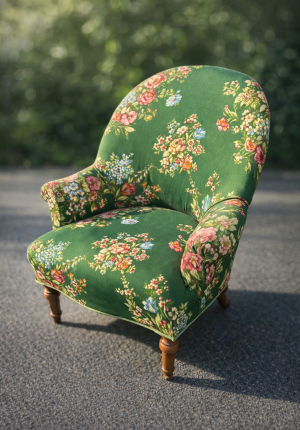 Fauteuil ancien Napoléon III en tissu floral vert