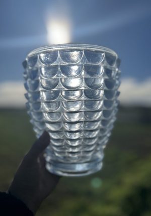 Vase Art déco en verre pressé moulé bleuté – années 1930