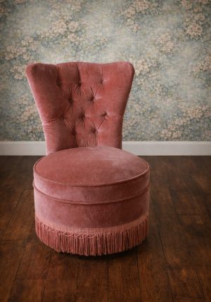Petit fauteuil capitonné en velours vieux rose – Vintage – esprit boudoir