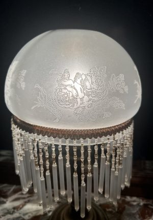 Petite lampe blanche charleston ancienne en verre et perles
