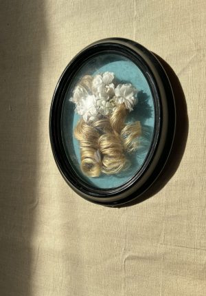 Reliquaire capillaire ancien sous verreTravail artisanal fin XIXe – début XXe siècle