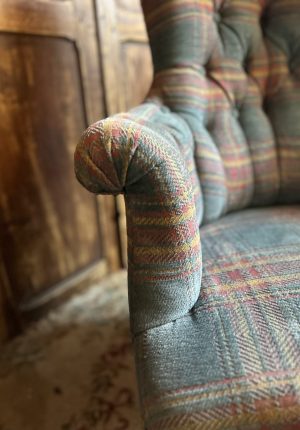 Fauteuil anglais ancien capitonné – rénovation tapissier – un havre de confort le chic en plus