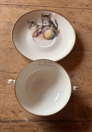 Tasse à bouillon ancienne en porcelaine de Limoges « Les chatons «