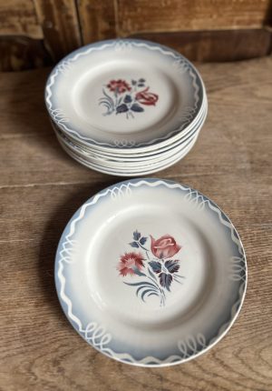 Série de 10 assiettes plates Modèle Marinette – faïence digouin sarguemines années 40 – 22,5 cm