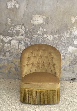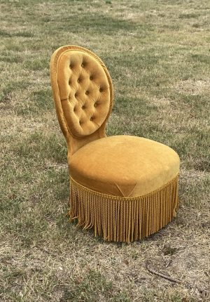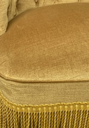 Chauffeuse vintage en velours capitonné couleur moutarde – années 60
