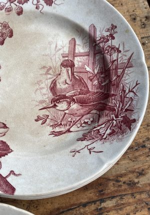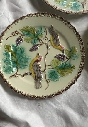 Série de trois assiettes en barbotine aux oiseaux – époque 1900