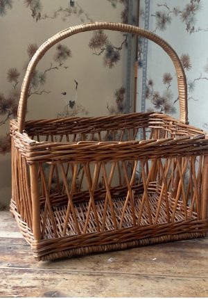 Panier ancien en osier époque 1900 – rare modèle rectangulaire