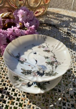 Duo de tasses à thé en porcelaine fine japonaise – grues et pivoines