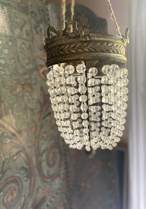 Lustre montgolfière Louis XVI – Bronze doré & pampilles – Époque 1900