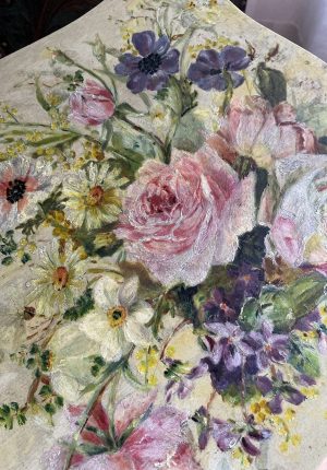 Petite table d’appoint époque 1900 aux motifs de fleurs peintes
