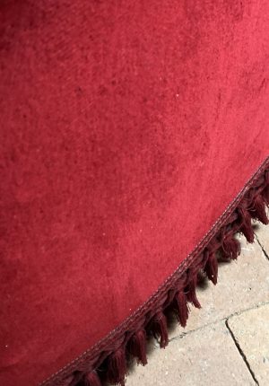 Petit canapé crapaud en velours rouge capitonné deux places Longueur 121