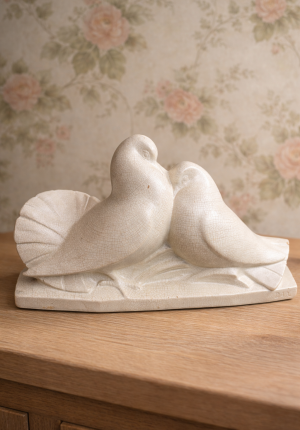 Sculpture colombes en faïence craquelée – Dax, univers Cazaux La poésie époque Art deco