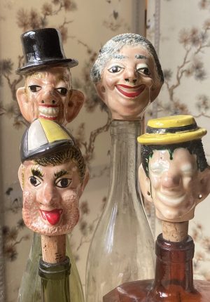 Lot de quatre bouchons anciens humoristiques en faïence vernissée une rareté