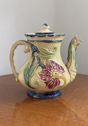 Grande théière Faïence barbotine de Wasmuël, XIXe siècle à décor floral