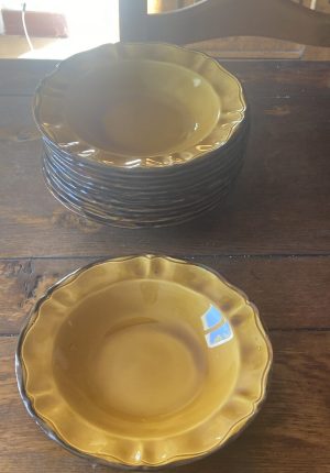Série de 12 assiettes creuses en faïence de Haute-Provence – Dans le goût de Vallauris– Années 70